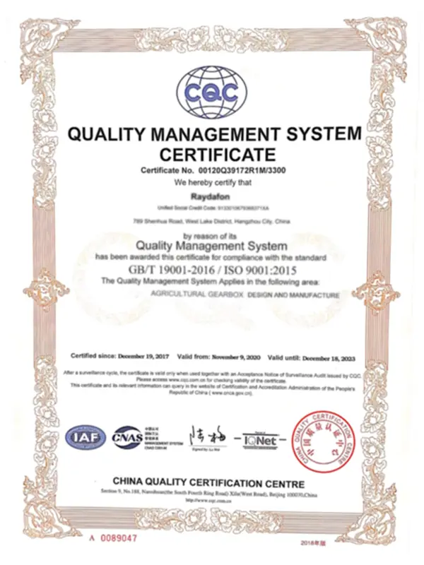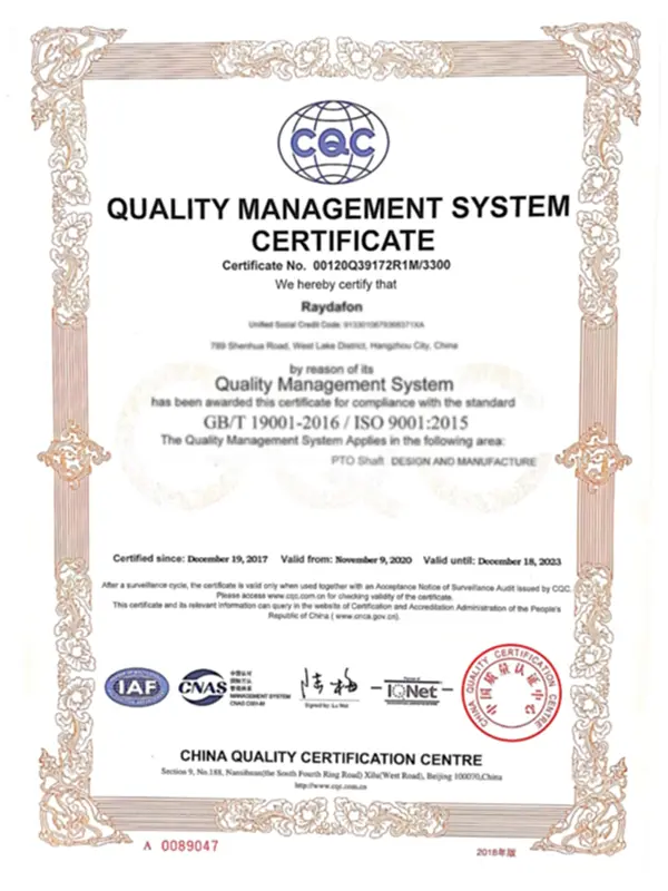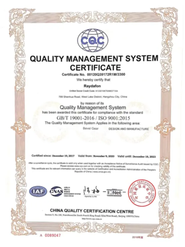 Raydafon je opravil več mednarodnih certifikatov, da zagotovi, da njegovi izdelki ustrezajo svetovnim standardom kakovosti. Okoli leta 2015 smo pridobili naslednje pomembne certifikate: