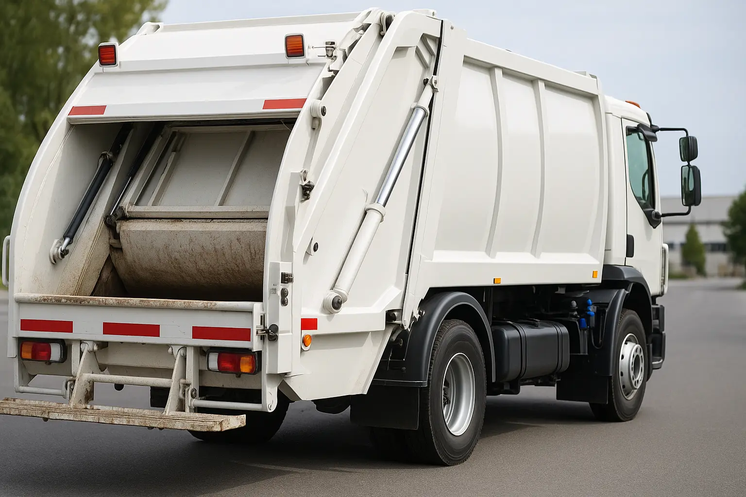 Stiskanje in pogon: zadaj nameščen kompresijski tovornjak uporablja hidravlični potiskač za stiskanje smeti in tako poveča gostoto polnjenja.